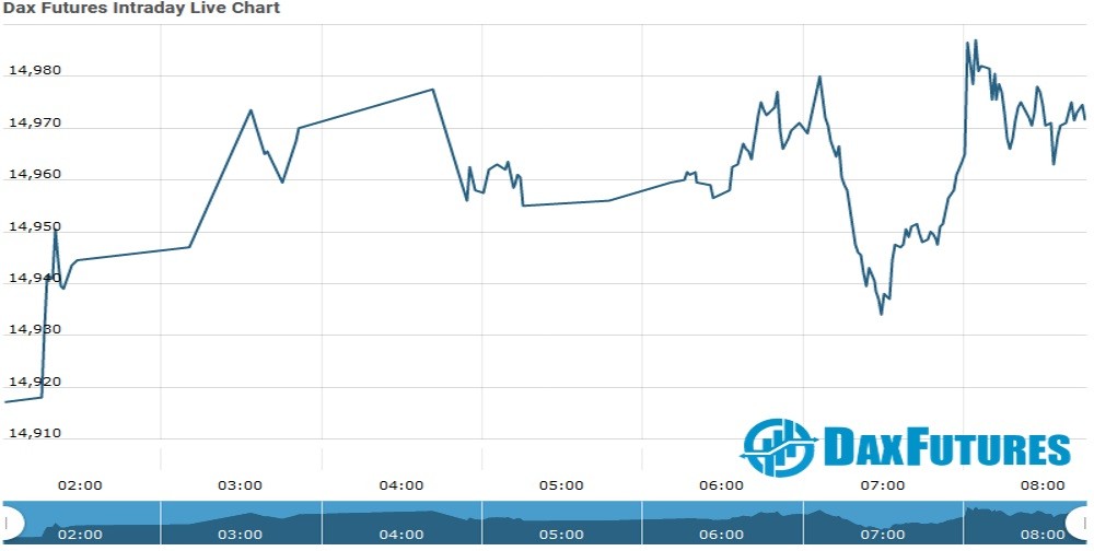 The DAX Futures is trading at 14,956.50 up with +0.02% or +2.50 point.The FTSE 100 Futures is trading at 6,921.50 with -0.06% percent or -4.00 point. The CAC 40 Futures is trading at 6,216.50 with a loss of -0.76% percent or -47.50 point. The EURO Stoxx 50 Futures trading at 3,916.00 with a loss of -1.39% percent or -55.00 point.